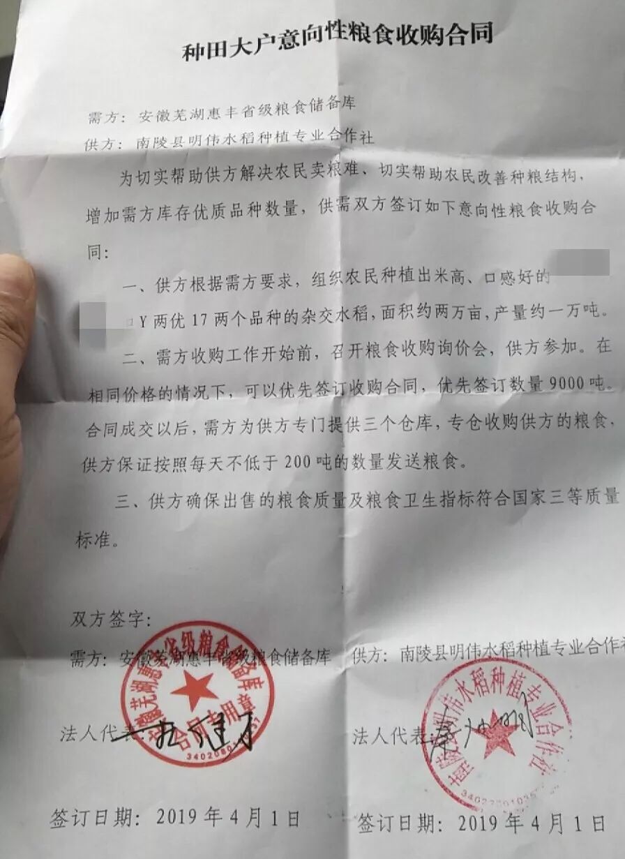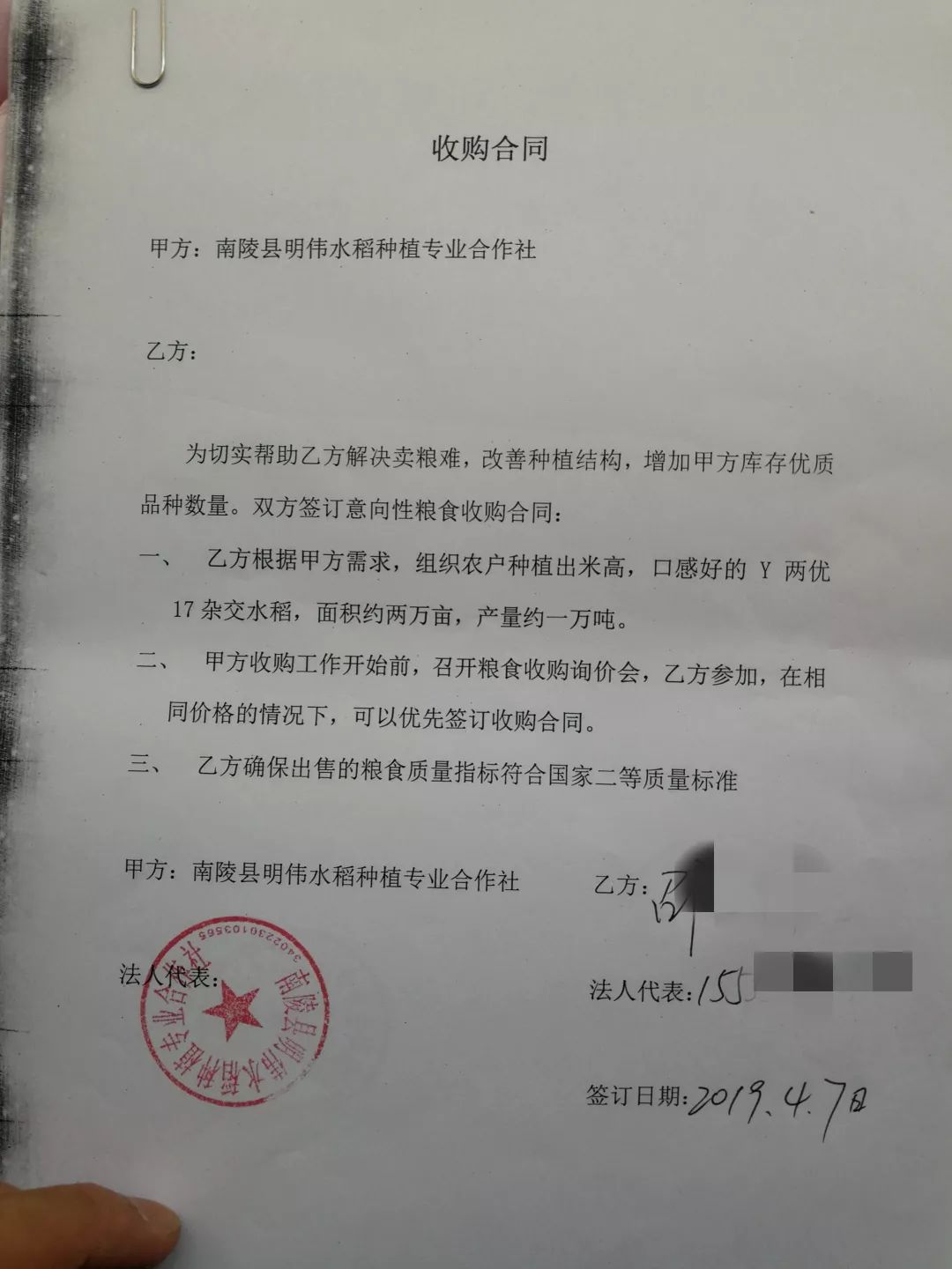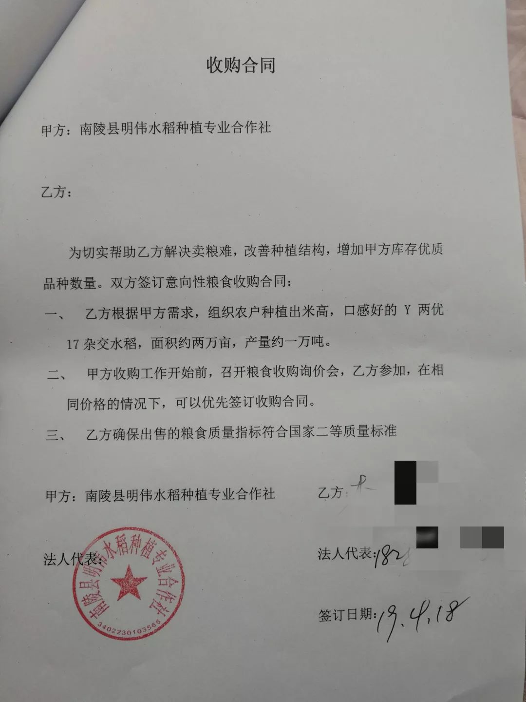 合作社與種植大戶簽訂的定向收購協議,種植大戶們紛紛表示,種植Y兩優17,底氣就是足!