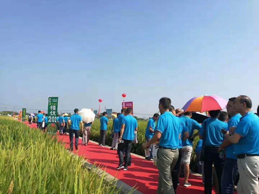 當天下午,與會嘉賓現場來到2019國家水稻新品種核心展示區及袁糧科研基地觀摩。100多畝的試驗田里展示了1000多個水稻品種。其中有袁糧公司上市或即將上市的新品種;有米質、抗病性、抗倒伏能力均是1級的“三一”直播稻“瑩優2601”;有R17、R919為恢復系配組的高產優質系列品種;還有不育系珍09S、玉06S配組的系列優質組品種等。這些高產組合、優質組合、直播組合、早熟組合等類型吸引著大伙們紛紛拍照留影。Y兩優17、Y兩優919、荃香優89、禧優華占、禧優202、星兩優3號、星兩優551等一批優勢品種受到了全國經銷商和種糧大戶的翹首稱贊,大家對袁糧的未來充滿信心!