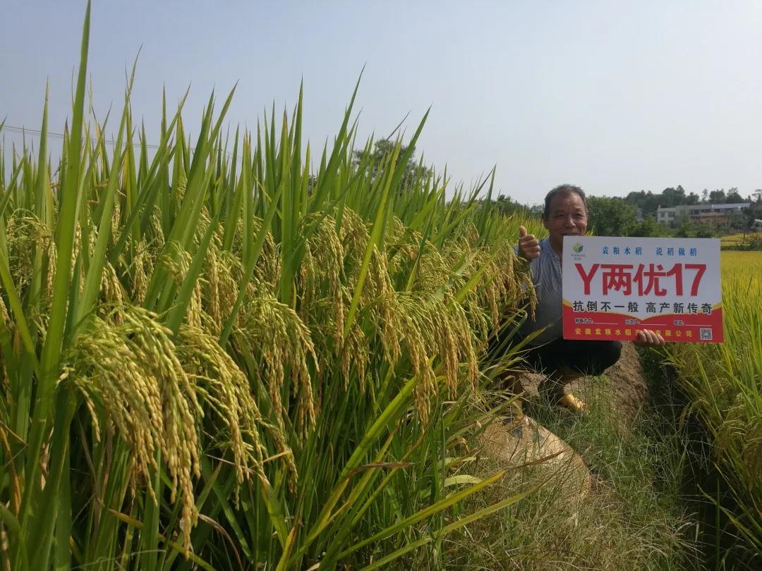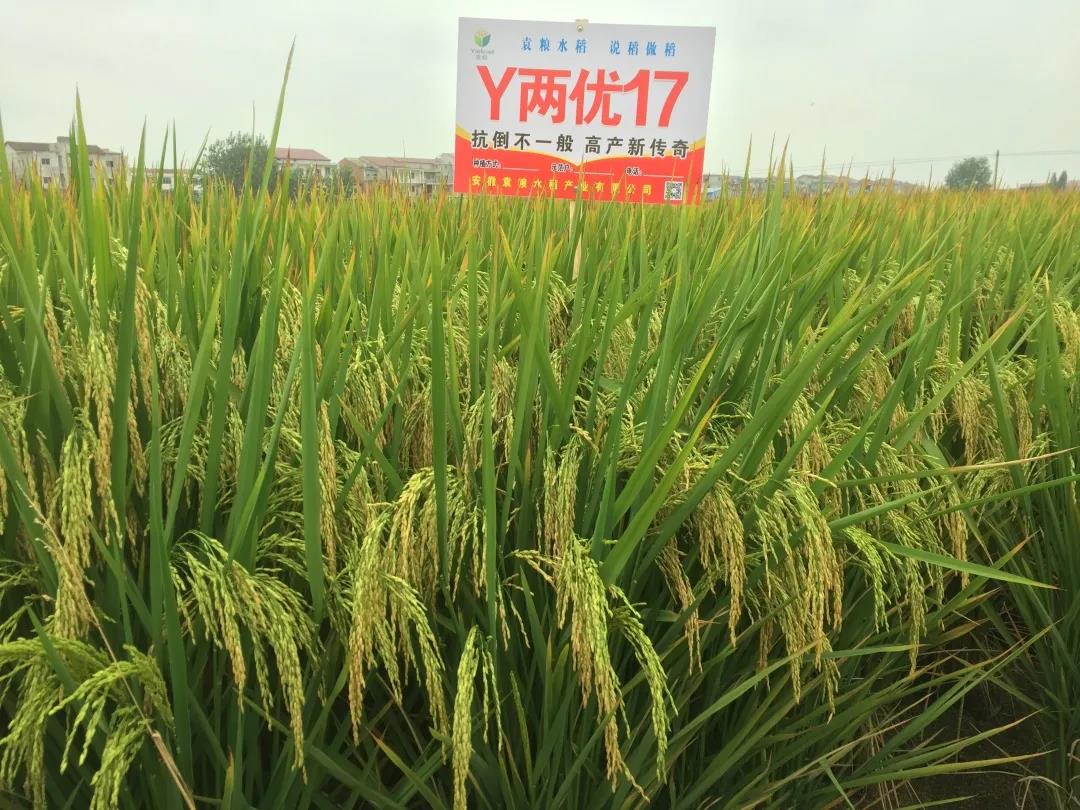Y兩優17是安徽袁糧水稻產業有限公司自主選育的秈型兩系雜交水稻品種,2017年通過國家品種審定委員會審定,審定編號:國審稻20170052。自審定推廣以來,Y兩優17在長江中下游以優質高產、抗倒性強、抗病性強等優勢,得到廣大種植戶和水稻種植合作社的好評與信賴,同時也受到米廠、糧食收儲單位的熱捧和青睞。