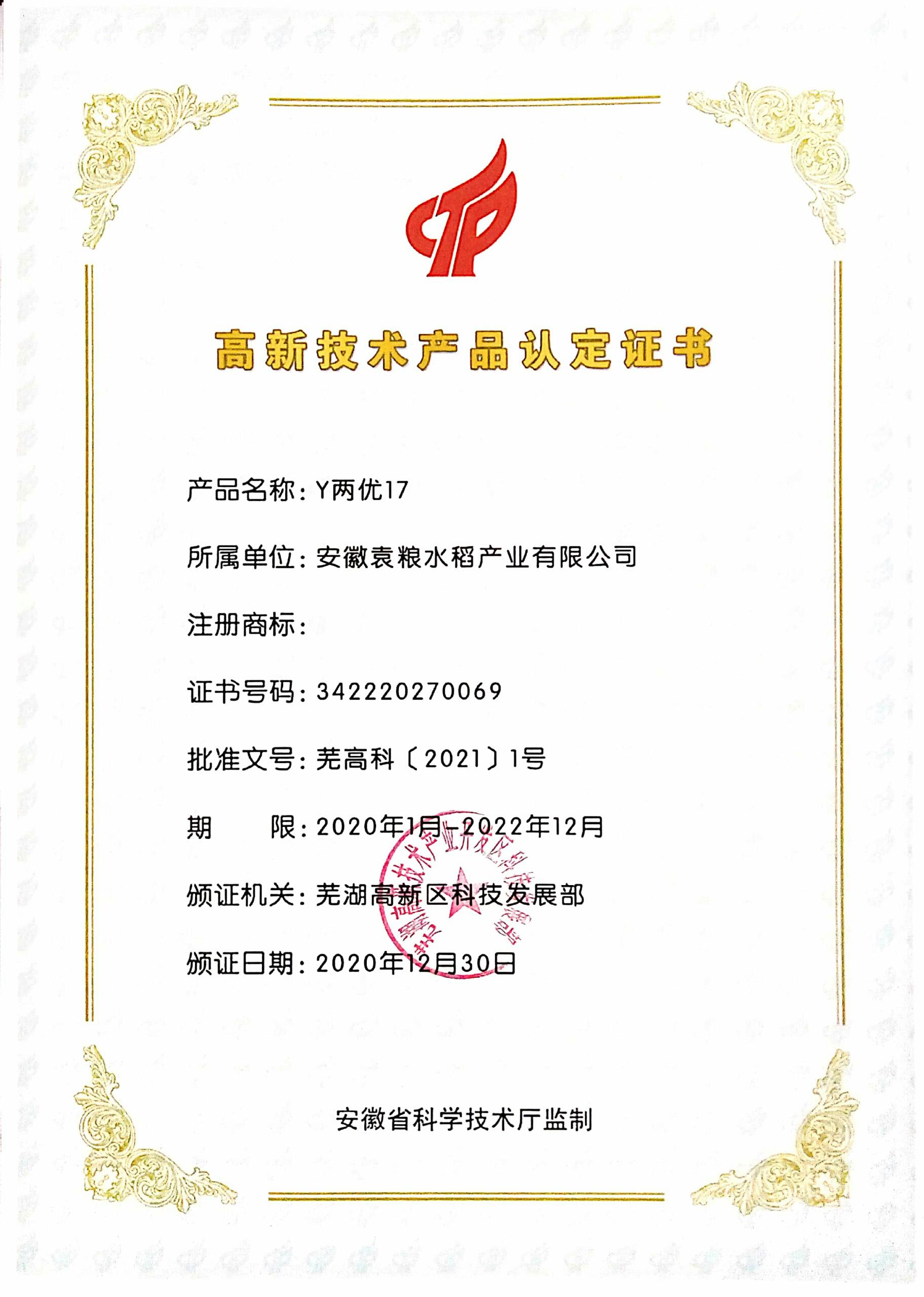 高新技術產品—Y兩優17