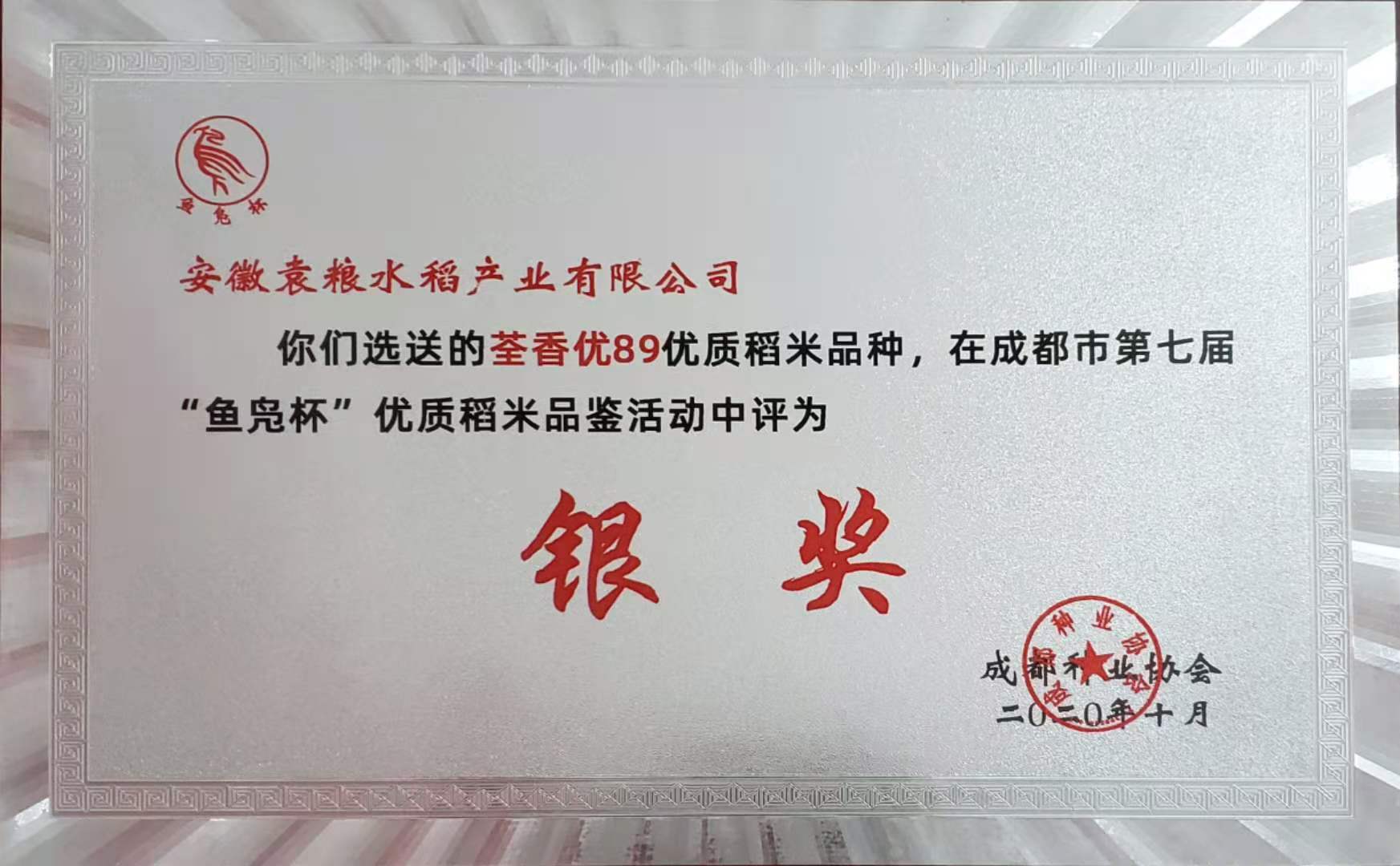 2020成都魚鳧杯優質稻米品鑒活動銀獎—荃香優89